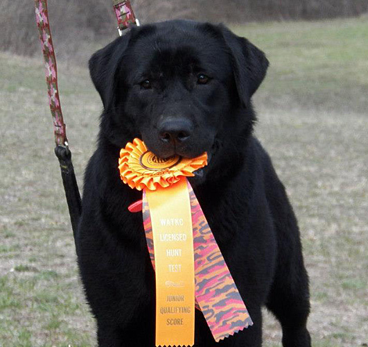 This special girl stole my heart from the day she was born.... struggled with puppy strangles at a young age which in turn has left her face scared. Jubes started on birds at a very early age and made memories in my mind forever.... at 5 months old, at her very first HRC, she nailed all the marks, even getting tangled in stuff in the water didn't stop her from delivering the bird to hand... a moment I will never forget along with everyone at the hunt test cheering her on for being the youngest entered. At the Labrador National WC and Hunt Test in 2011 at 6 months old she passed her first JH pass and acquired her WC all in one day ! Wow.... she is not looking back and will have lots of wonderful accomplishments on the way.
